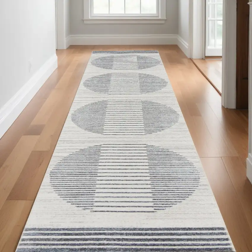 Blue and Ivory Geometric Power Loom Washable Runner Rug