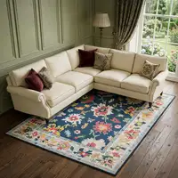 Blue And Ivory Geometric Washable Area Rug With UV Protection