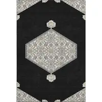 Blue And Ivory Geometric Washable Area Rug With UV Protection