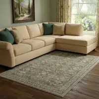 Blue And Ivory Geometric Washable Area Rug With UV Protection