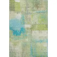 Blue And Ivory Geometric Washable Area Rug With UV Protection