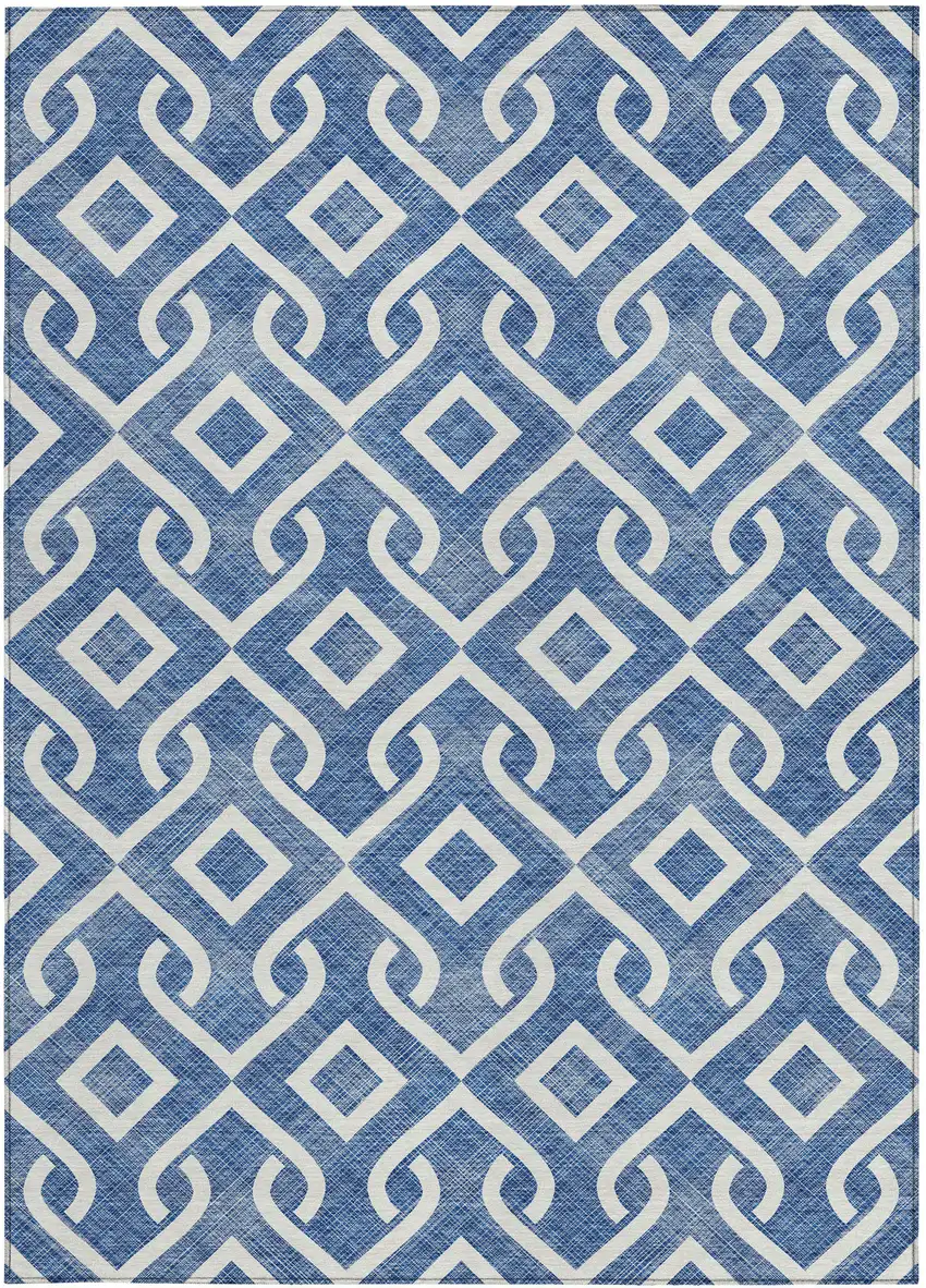 Blue And Ivory Geometric Washable Indoor Outdoor Area Rug
