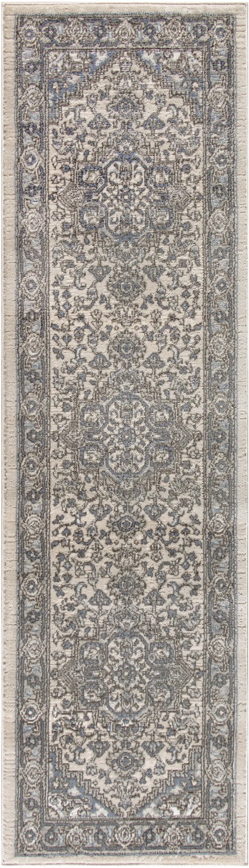 Add great coloration and comfortable texture to your space with this 8-foot runner blue and ivory medallion power loom distressed runner rug. This runner shaped rug features a medallion design in blue and ivory to give it visual interest. A classic shape marries with good looking design for your space area rugs help to give warmth and sense of home to your space. 26-inch H x 90-inch W x 0.32-inch D