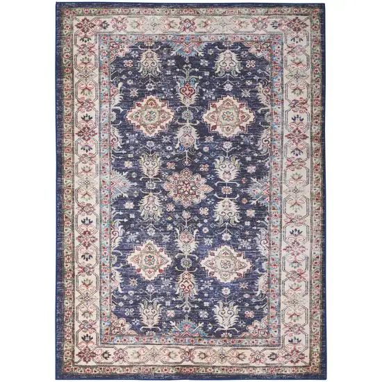 Blue and Ivory Oriental Distressed Non Skid Area Rug