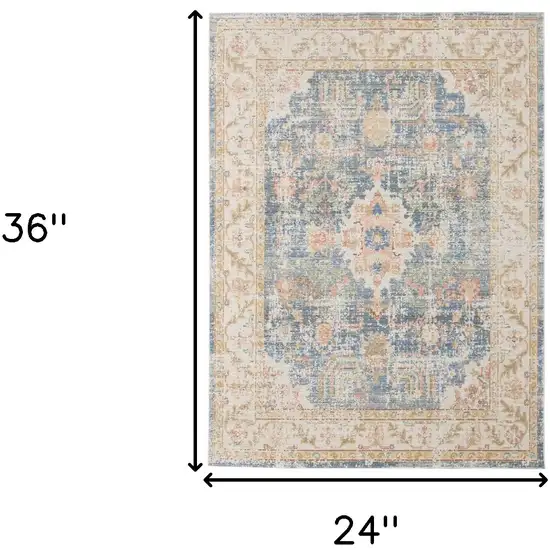 Blue and Ivory Oriental Power Loom Distressed Area Rug