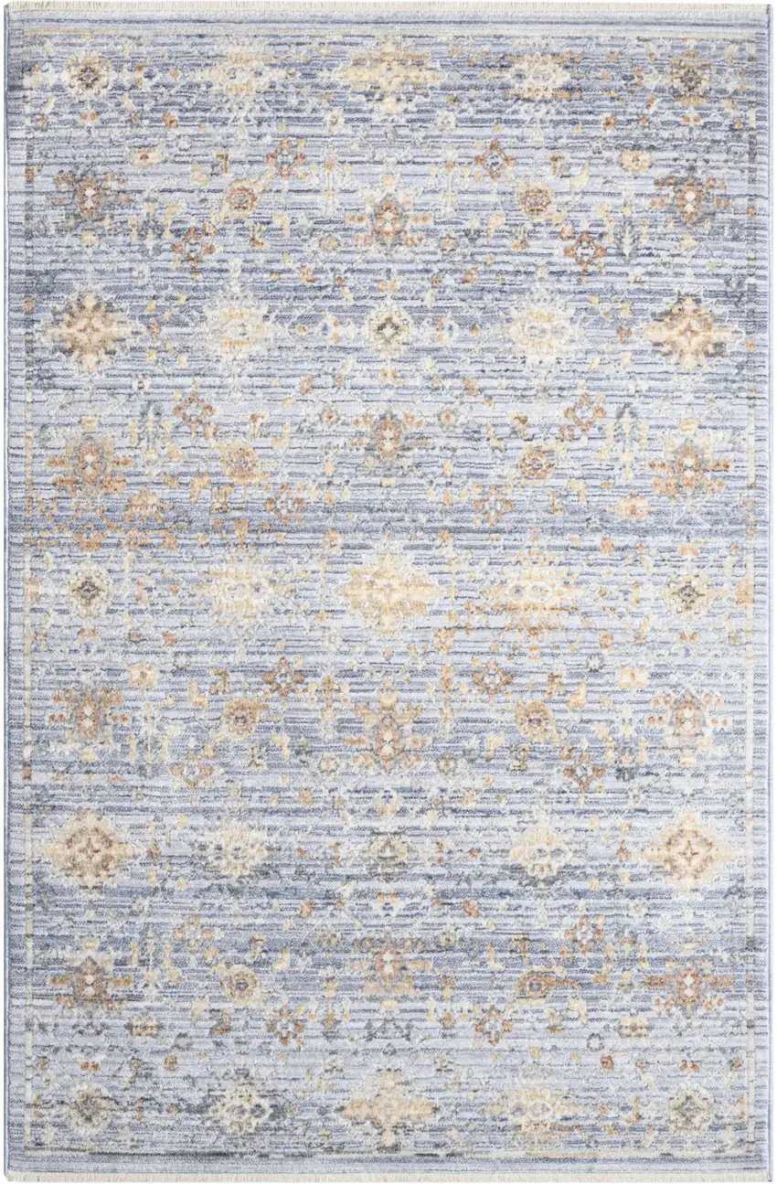 Blue and Ivory Oriental Power Loom Distressed Area Rug With Fringe