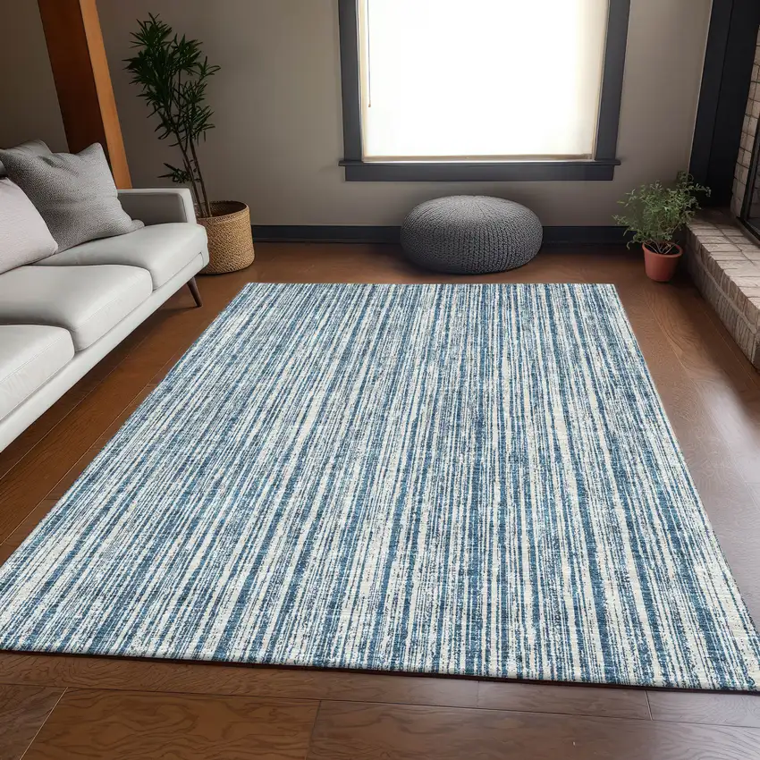 Blue And Ivory Striped Washable Indoor Outdoor Area Rug