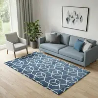 Blue And Ivory Wool Abstract Hand Tufted Area Rug