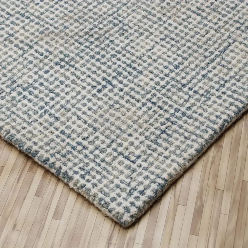 Blue and Ivory Wool Abstract Hand Tufted Runner Rug