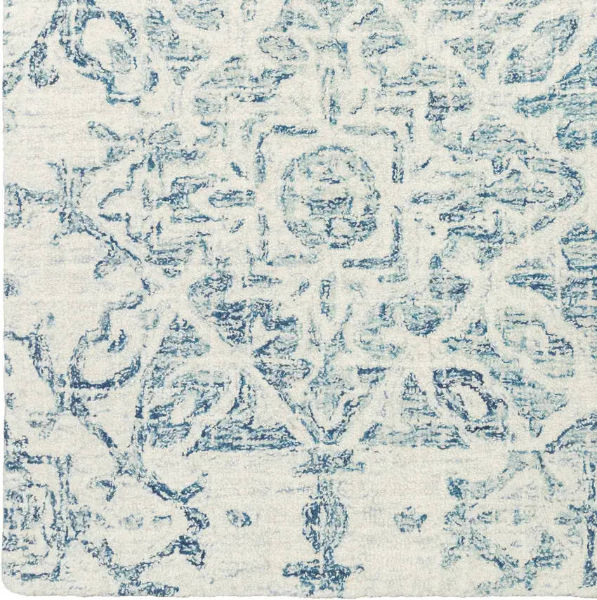 Blue And Ivory Wool Geometric Hand Tufted Area Rug