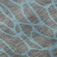 Blue And Olive Green Floral Medallion Washable Area Rug With UV Protection