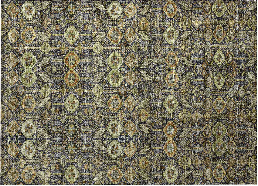 Blue and Orange Floral Washable Non Skid Indoor Outdoor Area Rug