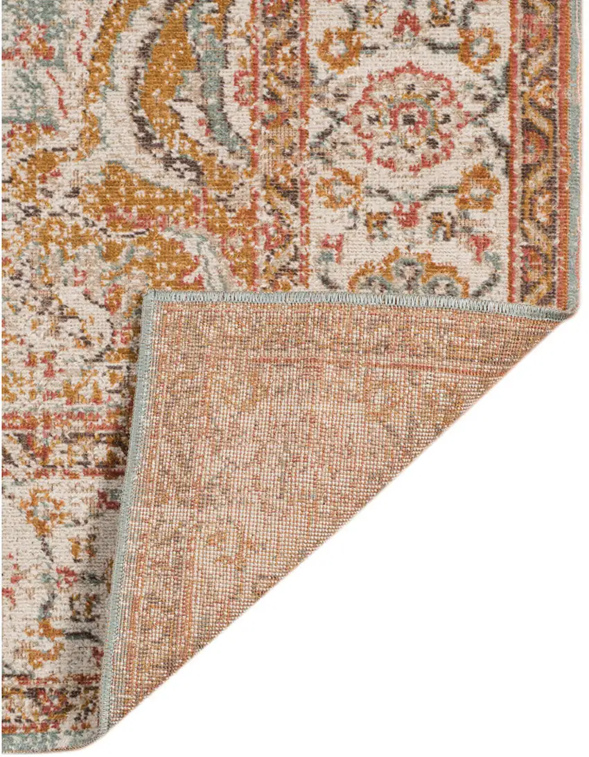 Blue and Orange Oriental Power Loom Distressed Area Rug