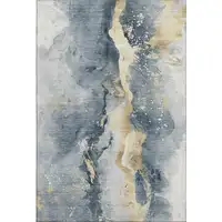 Blue And Pale Aqua Geometric Washable Area Rug With UV Protection