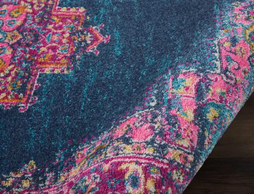 Whether you're decorating a modern, traditional, or bohemian space, this rug fits perfectly. The unique blue and pink medallion pattern effortlessly complements any interior design style.