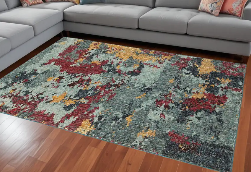 Bring a splash of vibrance to your living space with this multicolored area rug. Its abstract pattern complements a variety of interior decors, making it a versatile piece for any room.