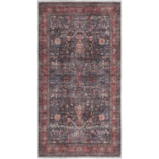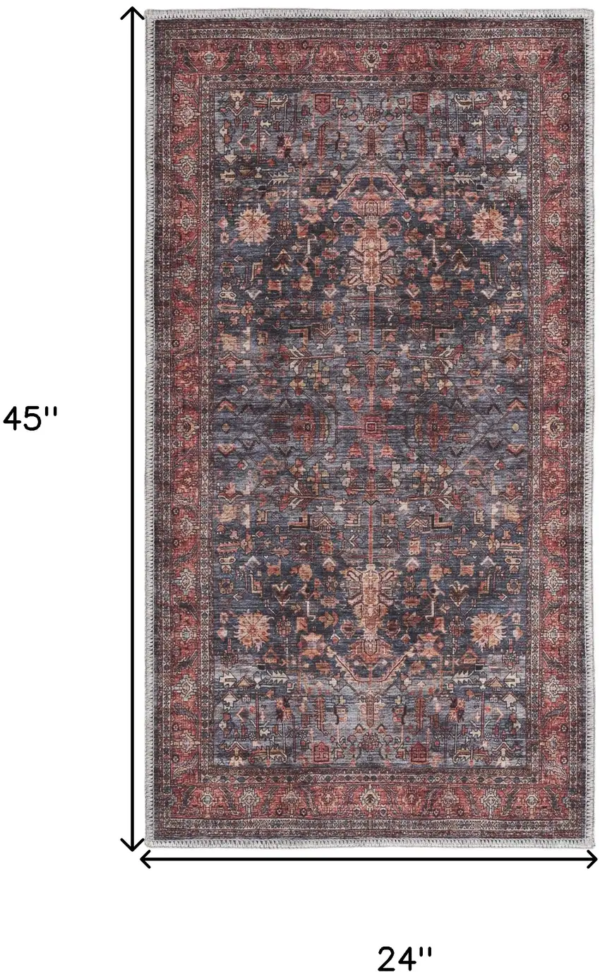 Blue and Red Oriental Power Loom Distressed Washable Non Skid Area Rug