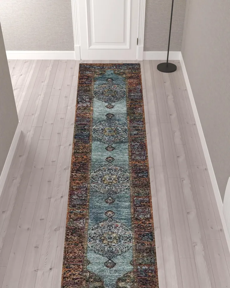 Add a sophisticated touch to your hallway or entryway with this beautiful runner rug. Its vibrant hues and oriental design make it a captivating focal point.