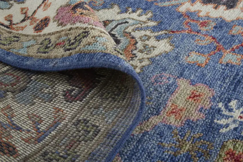 Blue And Red Wool Floral Hand Knotted Stain Resistant Area Rug