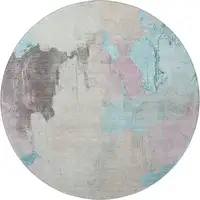 Blue And Silver Abstract Washable Area Rug With UV Protection