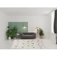 Blue And Silver Floral Washable Area Rug With UV Protection