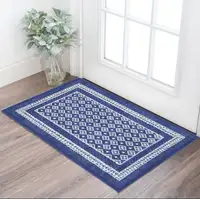 Blue And Silver Oriental Washable Area Rug With UV Protection