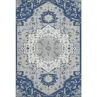 Blue And Silver Oriental Washable Area Rug With UV Protection