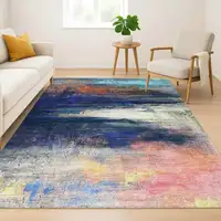 Blue And Sky Blue Tribal Distressed Washable Area Rug