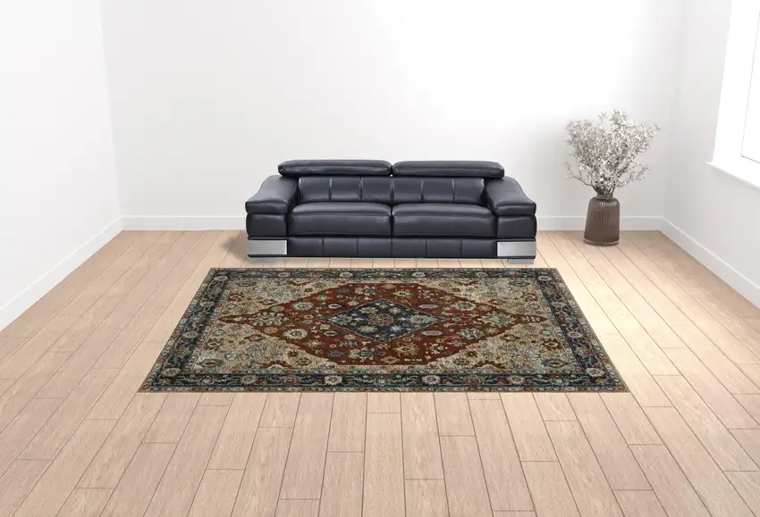 Immerse your living area in the softness with this high-quality, power-loomed area rug. Its beautiful blend of blue, beige, tan, brown, gold, and rust red, crafts a stylish accent that complements any furniture setting.