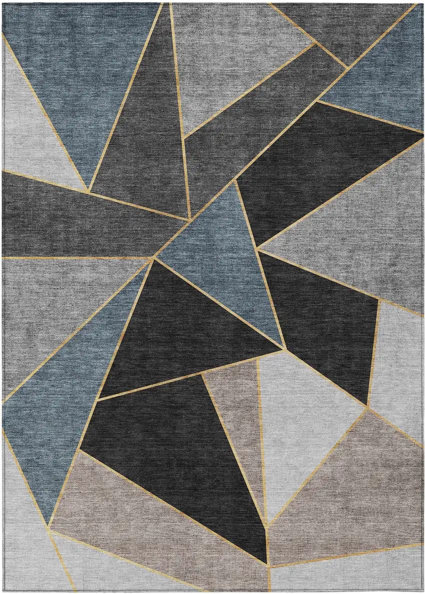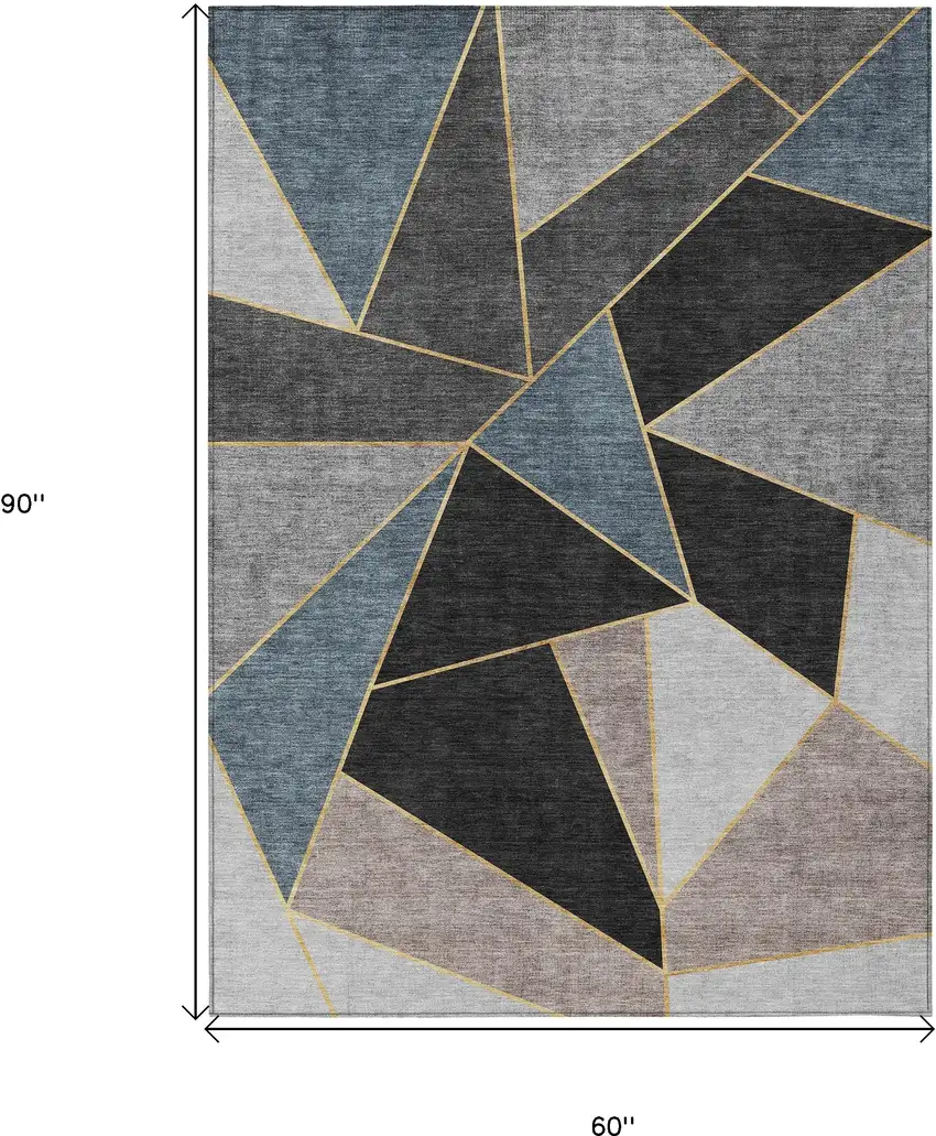 Blue Charcoal And Gray Geometric Washable Indoor Outdoor Area Rug