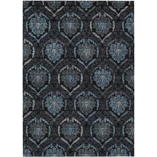 Add great coloration and comfortable texture to your space with this 3-foot x 5-foot blue charcoal and gray medallion washable indoor outdoor area rug. This rectangle shaped rug features a medallion design that will work well both indoors or out. A classic shape marries with good looking design for your living room, hall, bedroom, porch, patio, or poolside. Ideal for outdoor spaces or high traffic areas with kids and pets, this rug is made from heavy duty polyester that is stain resistant to help repel water, dirt, and stains. Versatile in use, durable, and easy to maintain, this rug is an ideal solution to add a decorative and inviting touch to your indoor or outdoor space. 36-inch h x 60-inch w x 0.19-inch d.