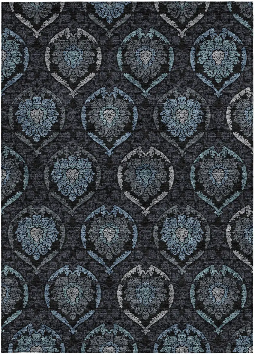 Set an inviting tone in your space with this 5-foot x 8-foot blue charcoal and gray medallion washable indoor outdoor area rug. This rectangle shaped rug features a medallion design that will work well both indoors or out. A classic shape marries with good looking design for your living room, hall, bedroom, porch, patio, or poolside. Ideal for outdoor spaces or high traffic areas with kids and pets, this rug is made from heavy duty polyester that is stain resistant to help repel water, dirt, and stains. Versatile in use, durable, and easy to maintain, this rug is an ideal solution to add a decorative and inviting touch to your indoor or outdoor space. 60-inch h x 90-inch w x 0.19-inch d.