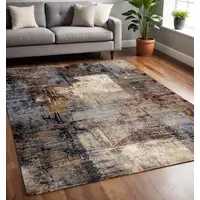 Transform your floor into an art masterpiece with this distressed area rug. It sports a artistic medallion design set against a deep blue background, certain to catch attention.
