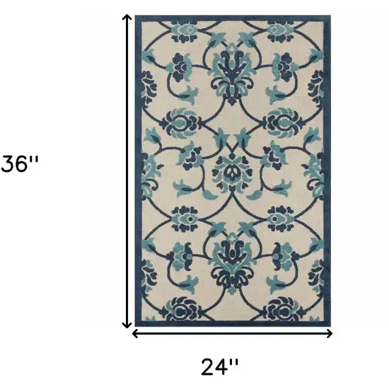 Blue Floral Non Skid Indoor Outdoor Area Rug
