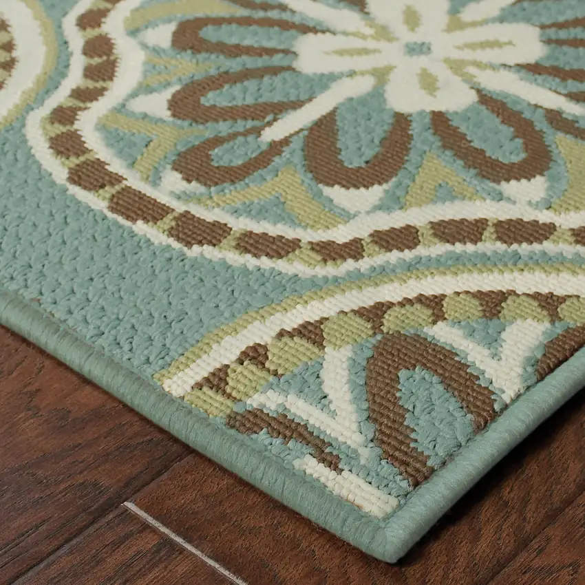 Blue Floral Stain Resistant Indoor Outdoor Area Rug