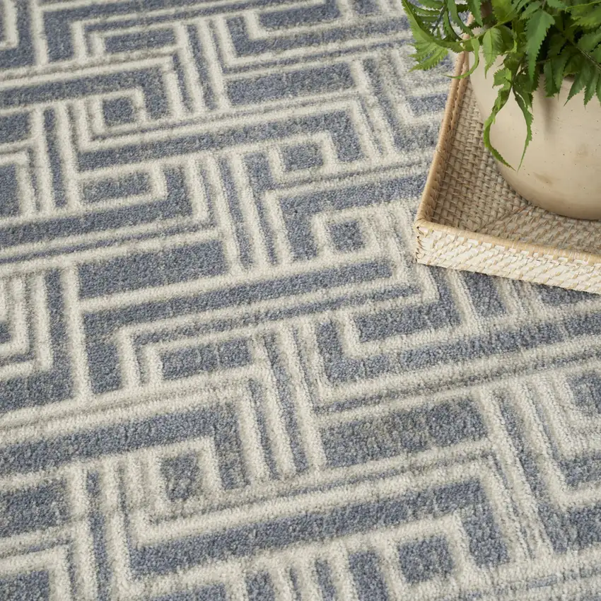 Blue Geometric Distressed Area Rug