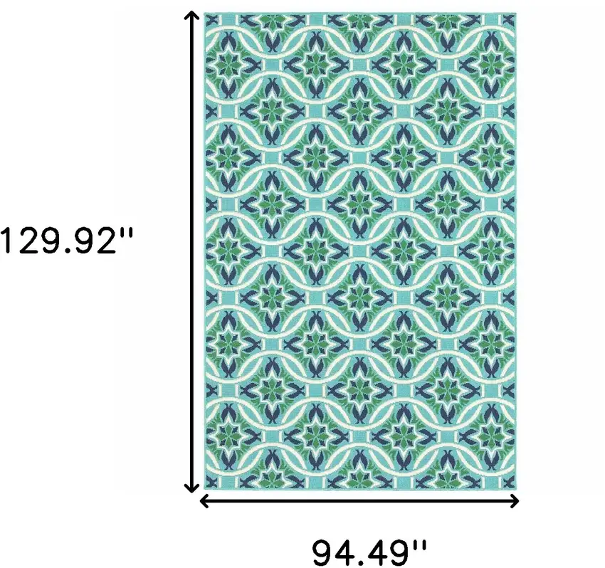 Blue Geometric Stain Resistant Indoor Outdoor Area Rug