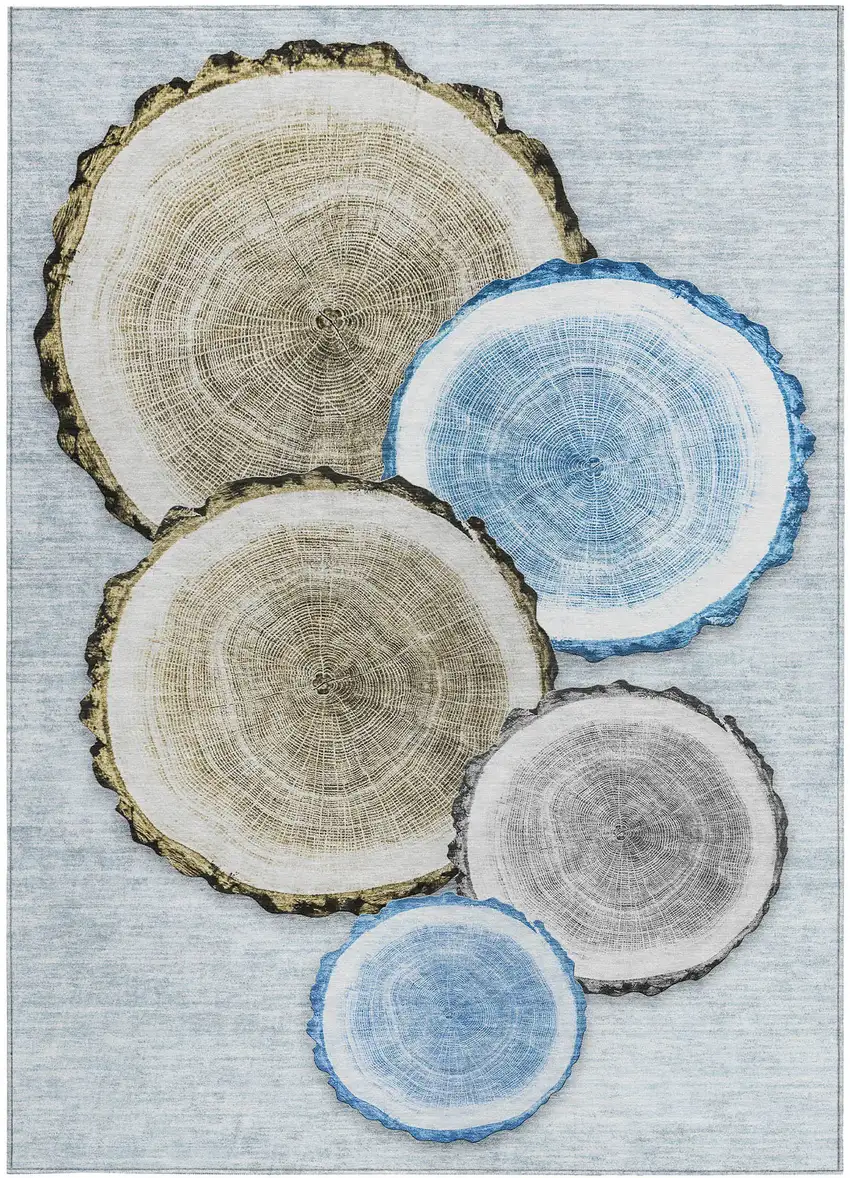 Add great coloration and comfortable texture to your space with this 8-foot x 10-foot blue gold and gray faux bois washable stain resistant non skid indoor outdoor area rug. This rectangle shaped rug features a faux bois design in blue gold and gray to give it visual interest. A classic shape marries with good looking design for your space ideal for spaces with kids and pets, this rug is stain resistant to help repel stains and spilled liquids. Place this area rug against a hardwood or tile floor and it will enliven your living space with style and sophistication. 96-inch H x 120-inch W x 0.19-inch D