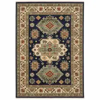 Blue Gold Green And Ivory Oriental Printed Stain Resistant Non Skid Area Rug