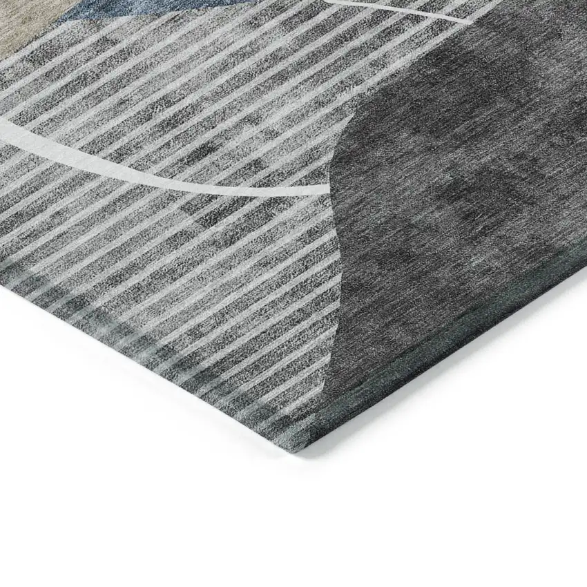 Set an inviting tone in your space with this 3-foot x 5-foot blue gray and charcoal abstract washable indoor outdoor area rug. This rectangle shaped rug features a abstract design that will work well both indoors or out. A classic shape marries with good looking design for your living room, hall, bedroom, porch, patio, or poolside. Ideal for outdoor spaces or high traffic areas with kids and pets, this rug is made from heavy duty polyester that is stain resistant to help repel water, dirt, and stains. Versatile in use, durable, and easy to maintain, this rug is an ideal solution to add a decorative and inviting touch to your indoor or outdoor space. 36-inch h x 60-inch w x 0.19-inch d.