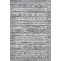 Blue Gray And Ivory Striped Power Loom Distressed Area Rug