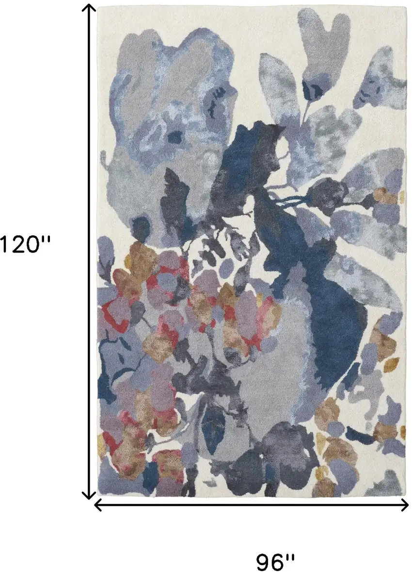 Blue Gray And Pink Wool Floral Tufted Handmade Area Rug