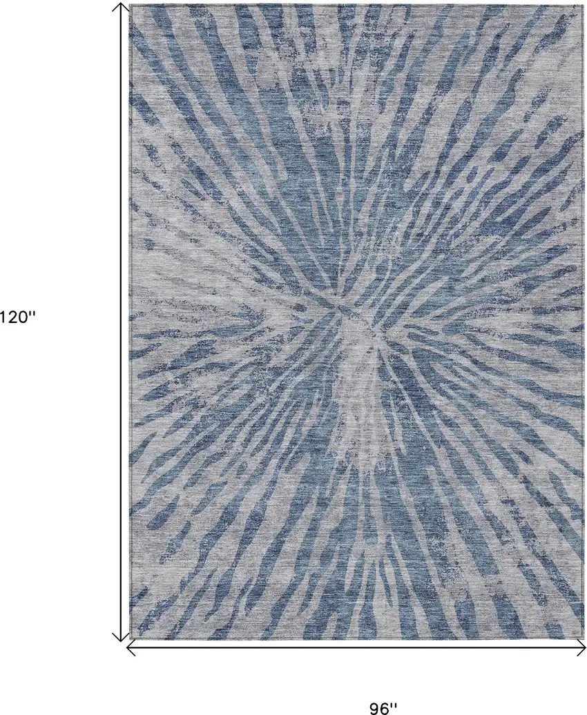 Set an inviting tone in your space with this 8-foot x 10-foot blue gray and silver abstract washable indoor outdoor area rug. This rectangle shaped rug features a abstract design that will work well both indoors or out. A classic shape marries with good looking design for your living room, hall, bedroom, porch, patio, or poolside. Ideal for outdoor spaces or high traffic areas with kids and pets, this rug is made from heavy duty polyester that is stain resistant to help repel water, dirt, and stains. Makes a great way to dress up your patio, porch, or poolside, but also works well as a durable and easy to maintain option in the kitchen, family room, or mudroom. 96-inch h x 120-inch w x 0.19-inch d.