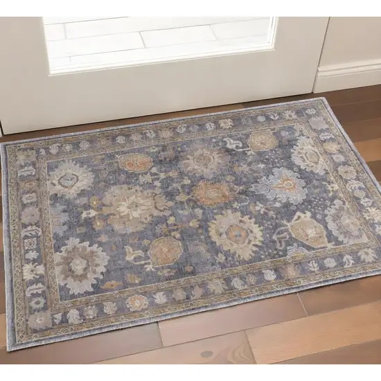 Blue Gray and Tan Oriental Hand Knotted Worn Faded Area Rug