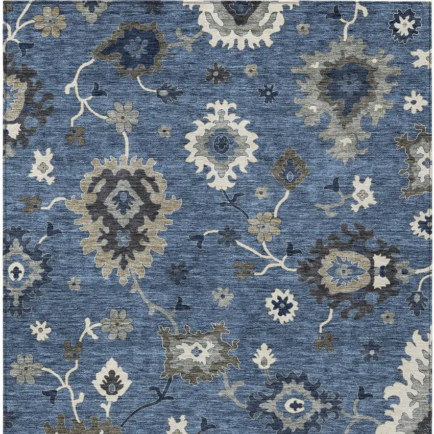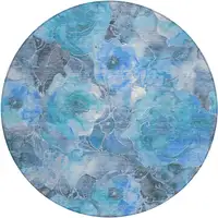 Blue Gray And White Floral Washable Indoor Outdoor Area Rug
