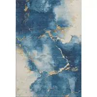 Blue Green And Brown Geometric Washable Area Rug With UV Protection