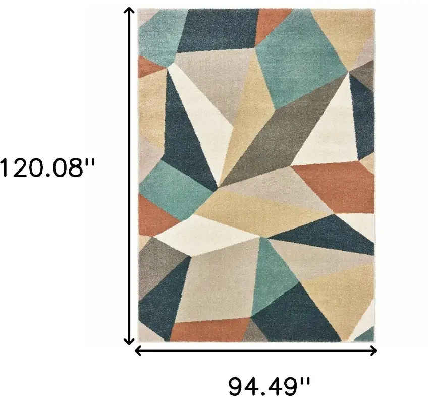 Whether you're revamping your living room or updating your bedroom, our Blue Green Beige Retro Wedge Indoor Area Rug is the perfect addition. Its versatile design seamlessly blends with any interior style, from contemporary to bohemian. Place it in your entryway to make a bold first impression or add it to your dining room to create an inviting atmosphere for guests.