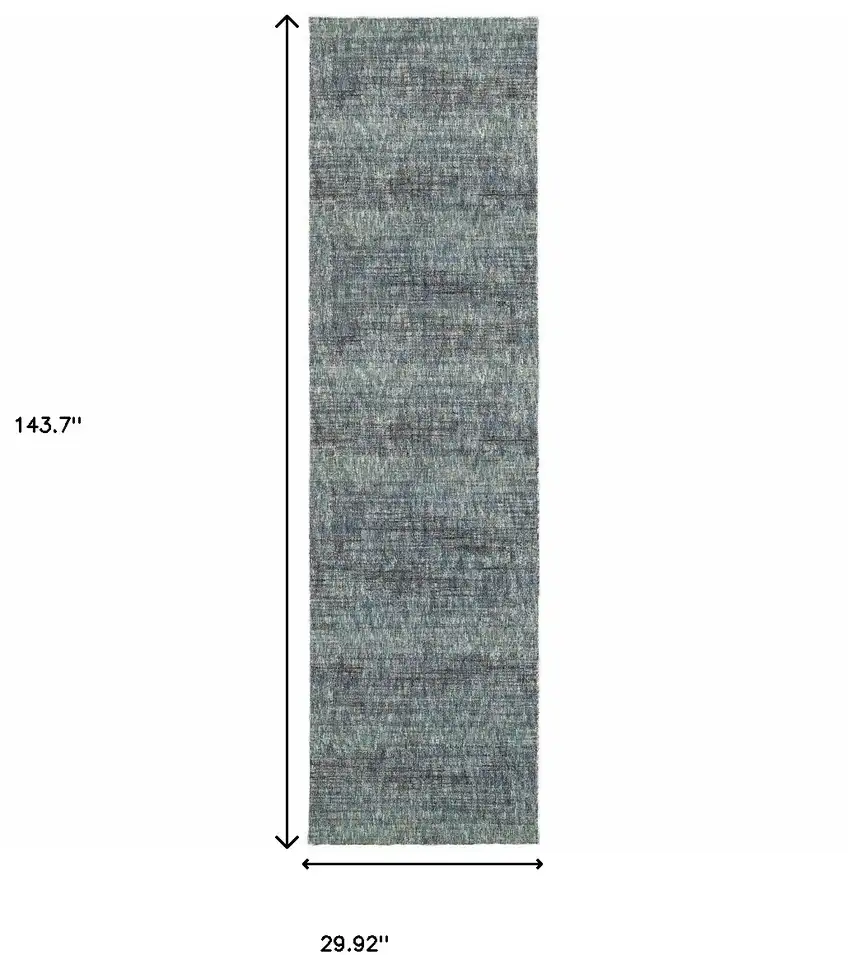 Blue Grey Silver And Green Power Loom Stain Resistant Runner Rug