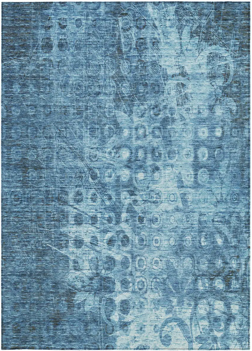 Blue Ikat Washable Non Skid Indoor Outdoor Area Rug