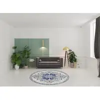 Blue Ivory And Beige Geometric Washable Area Rug With UV Protection